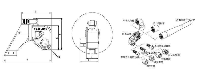 產品的選取依據(jù)螺栓鎖緊和拆松扭矩而定,扭矩值會因螺栓直徑和強度等級不同而有所變化。 |
