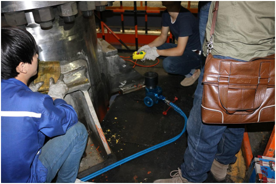 波霆機(jī)械立刻安排液壓工具出庫,并派兩名工程師連夜驅(qū)車前往客戶現(xiàn)場(chǎng)。深夜11點(diǎn)到達(dá)客戶現(xiàn)場(chǎng)。到達(dá)現(xiàn)場(chǎng)后發(fā)現(xiàn)工人們正在休息,之前借的一套美國產(chǎn)液壓扳手棘輪棘爪部分已損壞,液壓泵站也因連續(xù)高壓工作導(dǎo)致不上壓,一位現(xiàn)場(chǎng)負(fù)責(zé)人深切的握住了一位工程師的手說,沒想到你們會(huì)來,領(lǐng)導(dǎo)下達(dá)了死任務(wù),今天必須試壓成功。