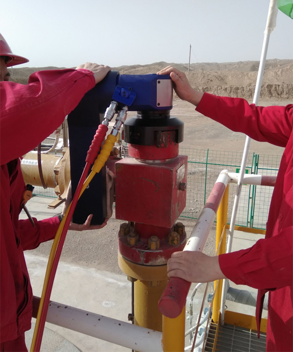 經(jīng)過我們?cè)搮^(qū)域的現(xiàn)場銷售工程師勘察測量做出解決方案,BOLTING(博霆)為之專門定制的天然氣單井固定式節(jié)流閥專用液壓扭矩扳手解決了困擾他們難題,得到了用戶的認(rèn)可,施工現(xiàn)場如下: