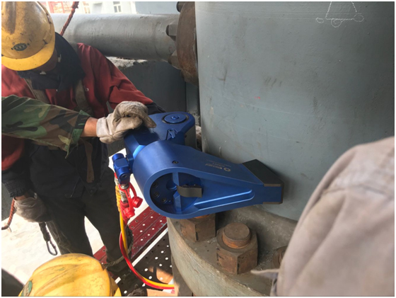 現(xiàn)場(chǎng)的螺栓工況比較狹隘,所定制的薄壁套筒一次吻合,使用液壓扳手一次性到位,管道試壓無(wú)泄露,為客戶節(jié)省了相當(dāng)寶貴的施工時(shí)間。